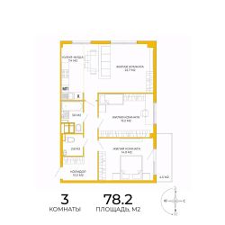 Продаётся 3-комнатная квартира в сданном доме (дом 13), срок сдачи: IV-кв. 2024, общей площадью 78.2 кв.м., на 2 этаже. Дизайнерская отделка.