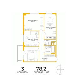 Продаётся 3-комнатная квартира в сданном доме (дом 13), срок сдачи: IV-кв. 2024, общей площадью 78.2 кв.м., на 9 этаже. Дизайнерская отделка.