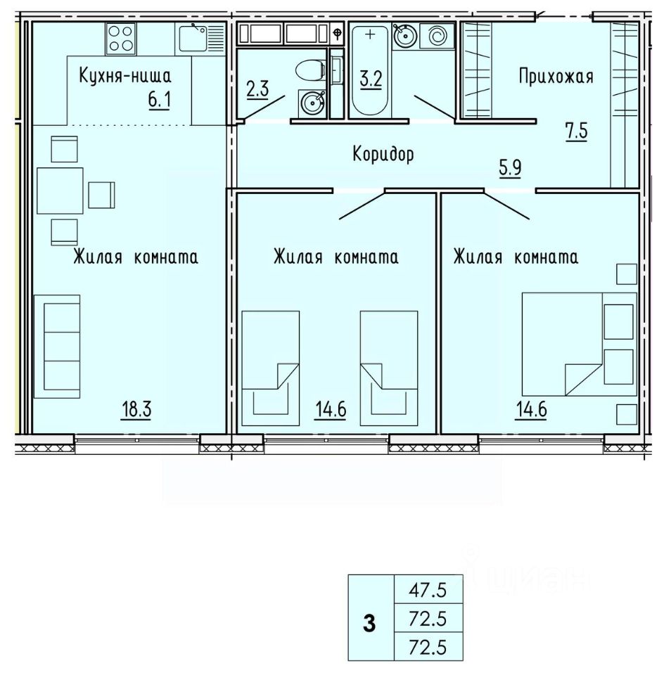 Продаётся 3-комнатная квартира в сданном доме (дом 20 (2 этап)), срок сдачи: IV-кв. 2023, общей площадью 72.5 кв.м., на 14 этаже. Дизайнерская отделка.