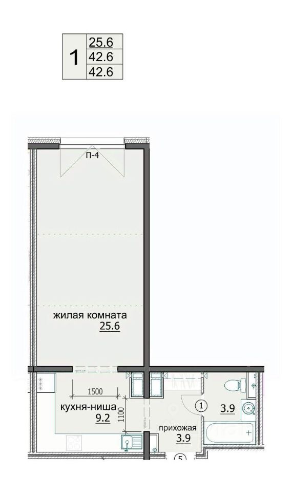 Продаётся 1-комнатная квартира в сданном доме (ул. Яшиной, 8), срок сдачи: IV-кв. 2022, общей площадью 42.6 кв.м., на 3 этаже. Дизайнерская отделка.