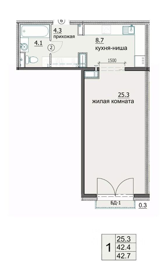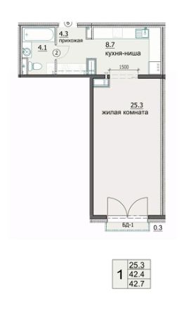 Продаётся 1-комнатная квартира в сданном доме (ул. Яшиной, 8), срок сдачи: IV-кв. 2022, общей площадью 42.7 кв.м., на 18 этаже. Дизайнерская отделка.