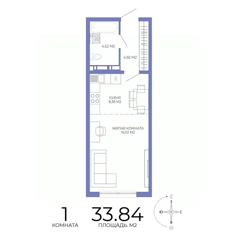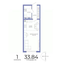 Продаётся 1-комнатная квартира в строящемся доме (дом 1), срок сдачи: II-кв. 2027, общей площадью 33.84 кв.м., на 7 этаже. Дизайнерская отделка.