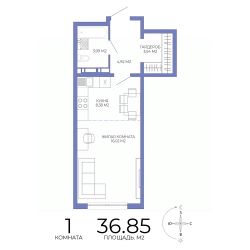 Продаётся 1-комнатная квартира в строящемся доме (дом 1), срок сдачи: II-кв. 2027, общей площадью 36.85 кв.м., на 8 этаже. Дизайнерская отделка.