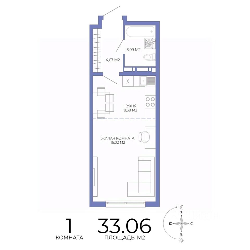 Продаётся 1-комнатная квартира в строящемся доме (дом 1), срок сдачи: II-кв. 2027, общей площадью 33.06 кв.м., на 8 этаже. Дизайнерская отделка.