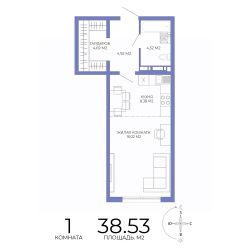 Продаётся 1-комнатная квартира в строящемся доме (дом 1), срок сдачи: II-кв. 2027, общей площадью 38.53 кв.м., на 11 этаже. Дизайнерская отделка.