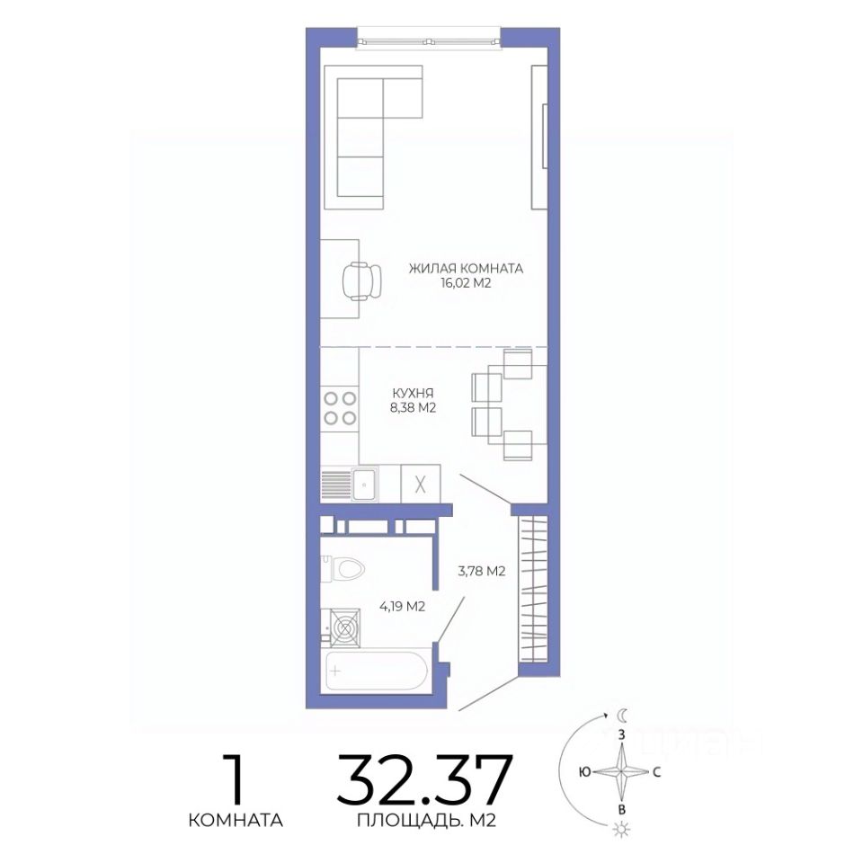 Продаётся 1-комнатная квартира в строящемся доме (дом 1), срок сдачи: II-кв. 2027, общей площадью 32.37 кв.м., на 13 этаже. Дизайнерская отделка.