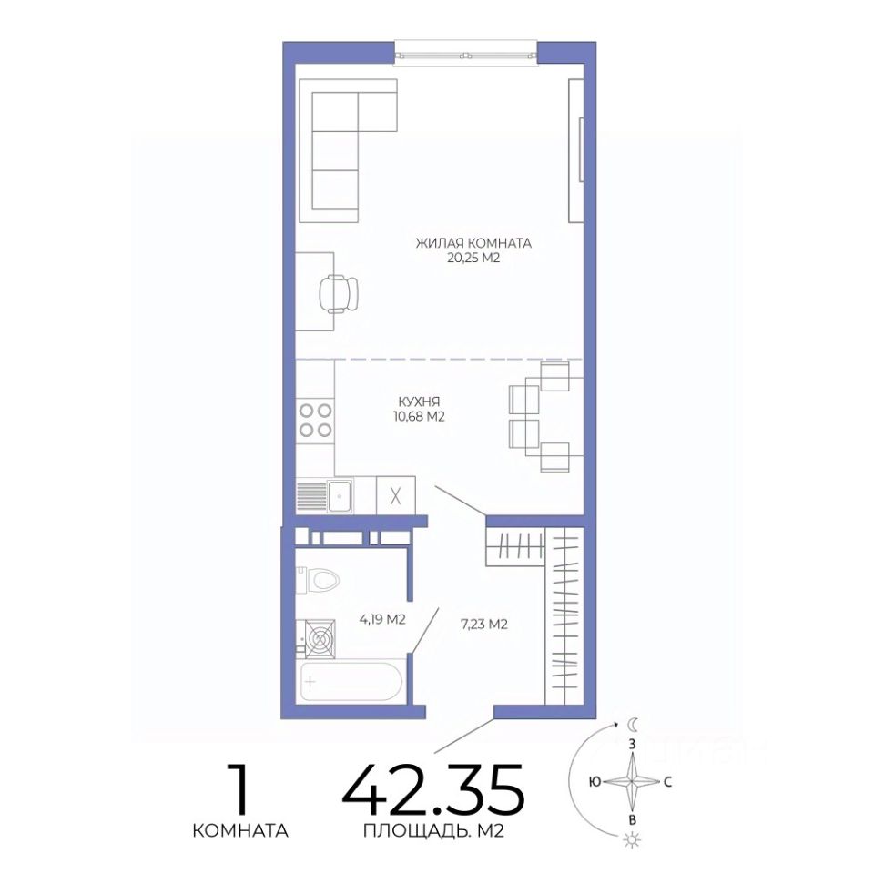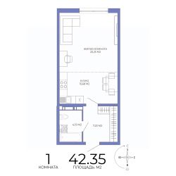 Продаётся 1-комнатная квартира в строящемся доме (дом 1), срок сдачи: II-кв. 2027, общей площадью 42.35 кв.м., на 3 этаже. Дизайнерская отделка.