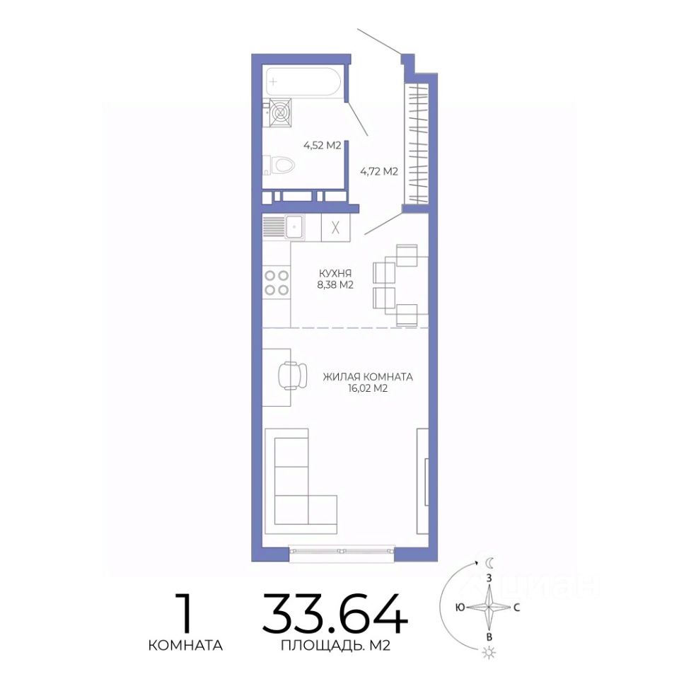 Продаётся 1-комнатная квартира в строящемся доме (дом 1), срок сдачи: II-кв. 2027, общей площадью 33.64 кв.м., на 14 этаже. Дизайнерская отделка.