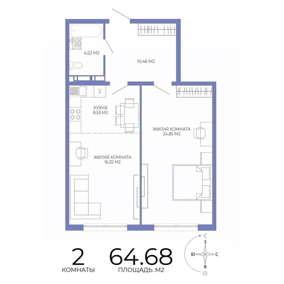 Продаётся 2-комнатная квартира в строящемся доме (дом 1), срок сдачи: II-кв. 2027, общей площадью 64.68 кв.м., на 14 этаже. Дизайнерская отделка.