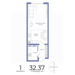 Продаётся 1-комнатная квартира в строящемся доме (дом 1), срок сдачи: II-кв. 2027, общей площадью 32.37 кв.м., на 17 этаже. Дизайнерская отделка.