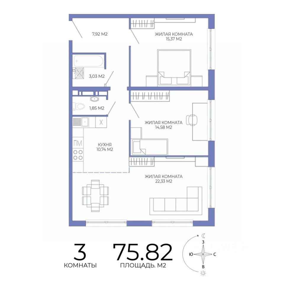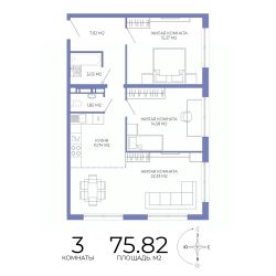 Продаётся 3-комнатная квартира в строящемся доме (дом 1), срок сдачи: II-кв. 2027, общей площадью 75.82 кв.м., на 17 этаже. Дизайнерская отделка.