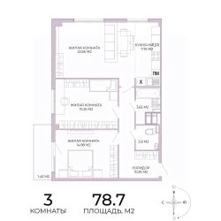 Продаётся 3-комнатная квартира в строящемся доме (дом 17), срок сдачи: IV-кв. 2025, общей площадью 78.7 кв.м., на 5 этаже. Дизайнерская отделка.