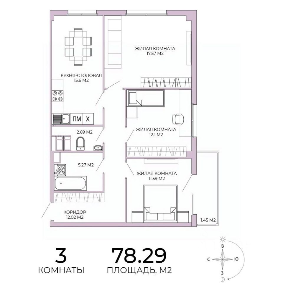 Продаётся 3-комнатная квартира в строящемся доме (дом 17), срок сдачи: IV-кв. 2025, общей площадью 78.29 кв.м., на 2 этаже. Дизайнерская отделка. В "Лугометрии" мы объединили общение с природой и комфорт городских условий. Название проекта родилось из идеального баланса между цветущими лугами и геометрией жилого комплекса. Этот район - настоящая экологическая сокровищница нашего города. Здесь растут редкие растения, занесенные в Красную книгу.Для строительства мы выбрали Октябрьский район, Арбеково: этот район активно развивается и считается одним из самых перспективных и приоритетных для развития Пензы. Тут проходят основные магистрали города, установлено самое большое количество видеокамер в Пензе, есть более десятка торговых центров и других социальных объектов.