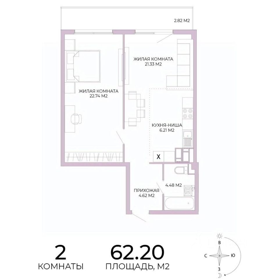 Продаётся 2-комнатная квартира в строящемся доме (дом 17), срок сдачи: IV-кв. 2025, общей площадью 62.2 кв.м., на 7 этаже. Дизайнерская отделка.