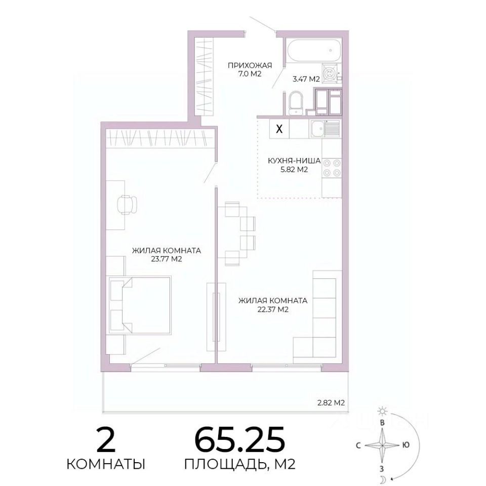 Продаётся 2-комнатная квартира в строящемся доме (дом 17), срок сдачи: IV-кв. 2025, общей площадью 65.25 кв.м., на 2 этаже. Дизайнерская отделка.