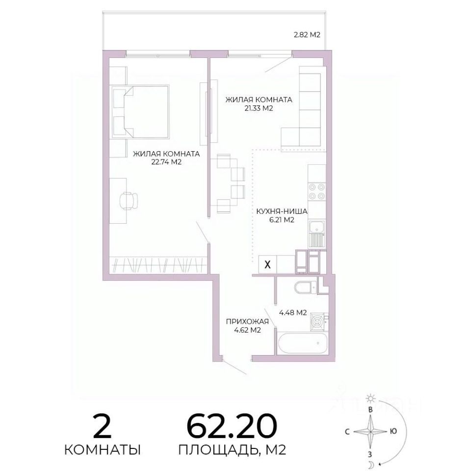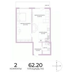 Продаётся 2-комнатная квартира в строящемся доме (дом 17), срок сдачи: IV-кв. 2025, общей площадью 62.2 кв.м., на 8 этаже. Дизайнерская отделка.