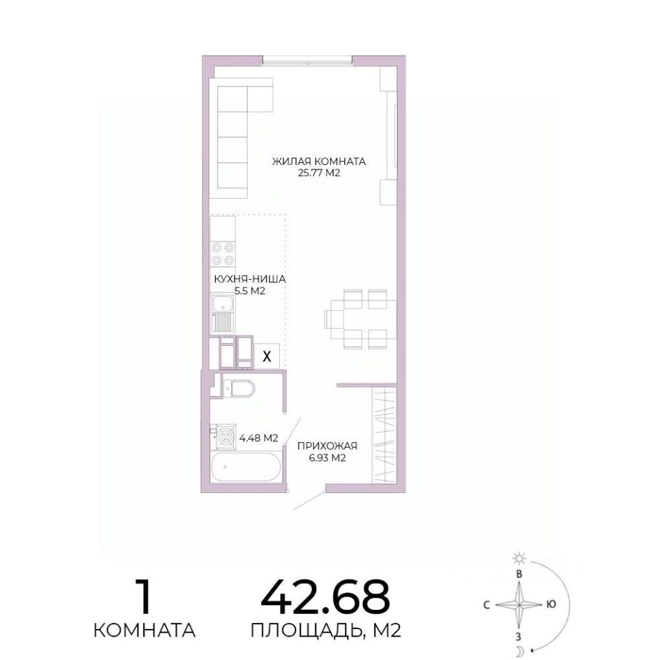 Продаётся 1-комнатная квартира в строящемся доме (дом 17), срок сдачи: IV-кв. 2025, общей площадью 42.68 кв.м., на 8 этаже. Дизайнерская отделка.