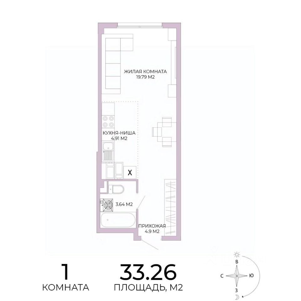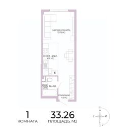 Продаётся 1-комнатная квартира в строящемся доме (дом 17), срок сдачи: IV-кв. 2025, общей площадью 33.26 кв.м., на 8 этаже. Дизайнерская отделка.