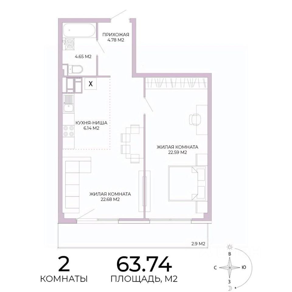 Продаётся 2-комнатная квартира в строящемся доме (дом 17), срок сдачи: IV-кв. 2025, общей площадью 63.74 кв.м., на 8 этаже. Дизайнерская отделка.