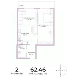 Продаётся 2-комнатная квартира в строящемся доме (дом 17), срок сдачи: IV-кв. 2025, общей площадью 62.46 кв.м., на 10 этаже. Дизайнерская отделка.