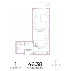 Продаётся 1-комнатная квартира в строящемся доме (дом 17), срок сдачи: IV-кв. 2025, общей площадью 46.38 кв.м., на 10 этаже. Дизайнерская отделка.