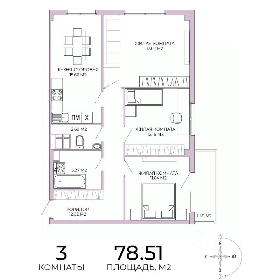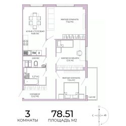 Продаётся 3-комнатная квартира в строящемся доме (дом 17), срок сдачи: IV-кв. 2025, общей площадью 78.51 кв.м., на 10 этаже. Дизайнерская отделка.