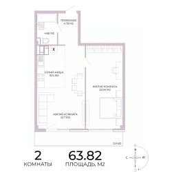 Продаётся 2-комнатная квартира в строящемся доме (дом 17), срок сдачи: IV-кв. 2025, общей площадью 63.82 кв.м., на 10 этаже. Дизайнерская отделка.