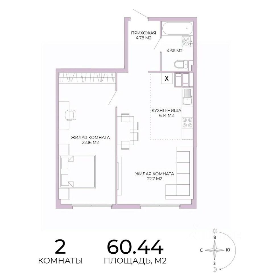 Продаётся 2-комнатная квартира в строящемся доме (дом 17), срок сдачи: IV-кв. 2025, общей площадью 60.44 кв.м., на 10 этаже. Дизайнерская отделка.