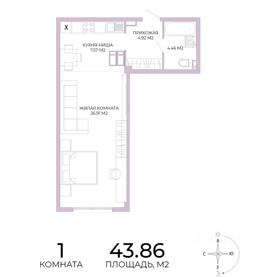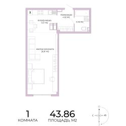 Продаётся 1-комнатная квартира в строящемся доме (дом 17), срок сдачи: IV-кв. 2025, общей площадью 43.86 кв.м., на 10 этаже. Дизайнерская отделка.