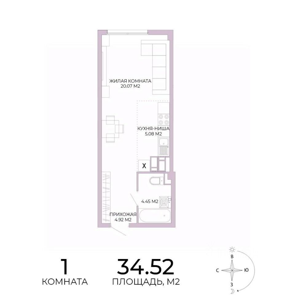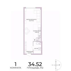 Продаётся 1-комнатная квартира в строящемся доме (дом 17), срок сдачи: IV-кв. 2025, общей площадью 34.52 кв.м., на 10 этаже. Дизайнерская отделка.