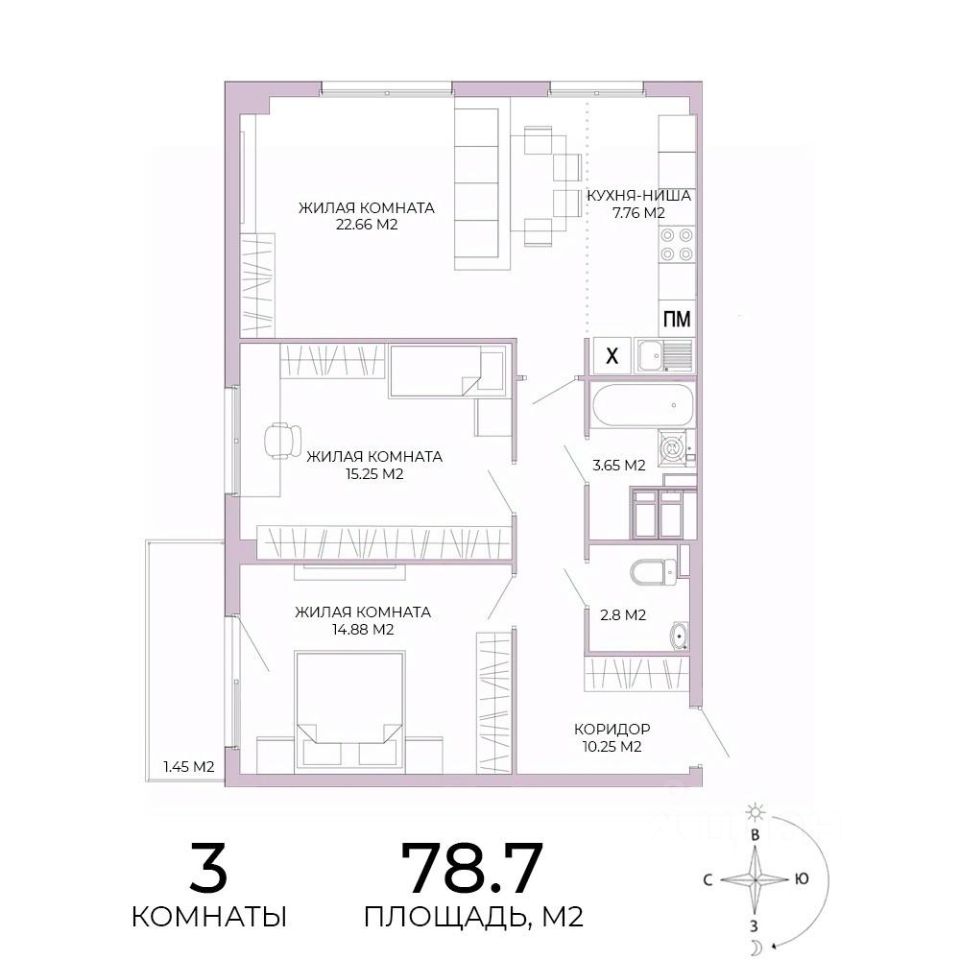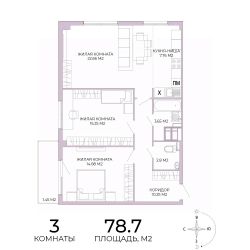Продаётся 3-комнатная квартира в строящемся доме (дом 17), срок сдачи: IV-кв. 2025, общей площадью 78.7 кв.м., на 2 этаже. Дизайнерская отделка.