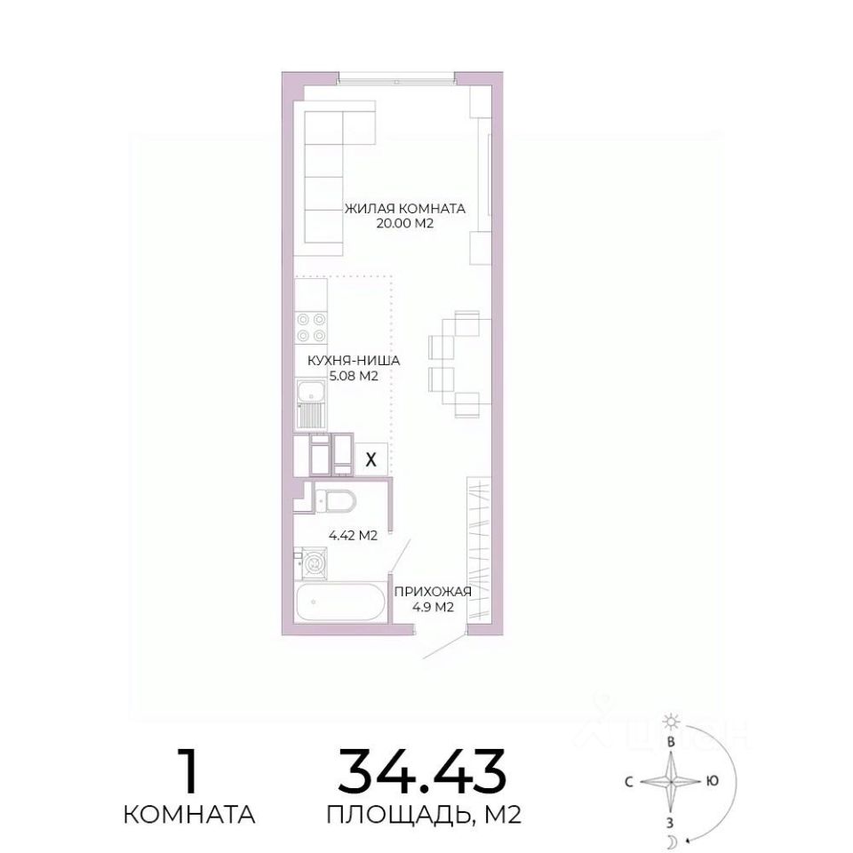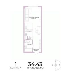 Продаётся 1-комнатная квартира в строящемся доме (дом 17), срок сдачи: IV-кв. 2025, общей площадью 34.43 кв.м., на 11 этаже. Дизайнерская отделка.