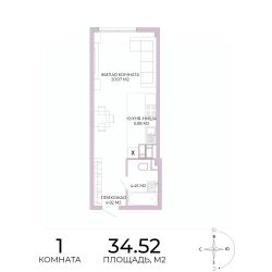 Продаётся 1-комнатная квартира в строящемся доме (дом 17), срок сдачи: IV-кв. 2025, общей площадью 34.52 кв.м., на 11 этаже. Дизайнерская отделка.