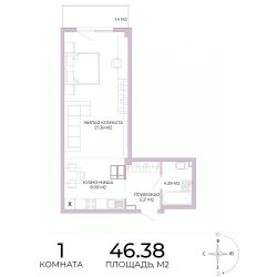 Продаётся 1-комнатная квартира в строящемся доме (дом 17), срок сдачи: IV-кв. 2025, общей площадью 46.38 кв.м., на 12 этаже. Дизайнерская отделка.
