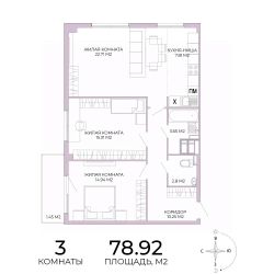 Продаётся 3-комнатная квартира в строящемся доме (дом 17), срок сдачи: IV-кв. 2025, общей площадью 78.92 кв.м., на 12 этаже. Дизайнерская отделка.