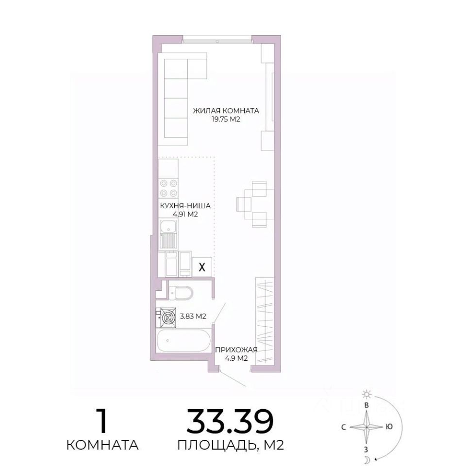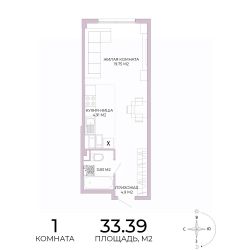 Продаётся 1-комнатная квартира в строящемся доме (дом 17), срок сдачи: IV-кв. 2025, общей площадью 33.39 кв.м., на 12 этаже. Дизайнерская отделка.