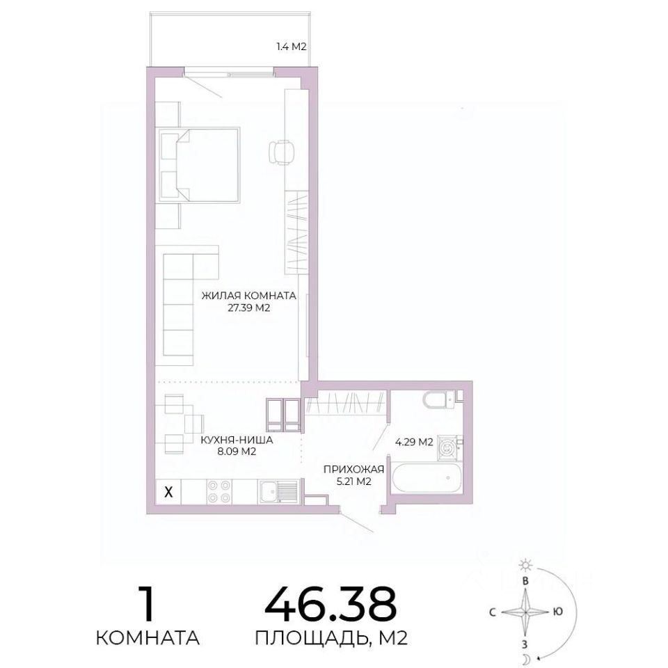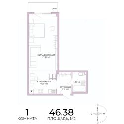 Продаётся 1-комнатная квартира в строящемся доме (дом 17), срок сдачи: IV-кв. 2025, общей площадью 46.38 кв.м., на 13 этаже. Дизайнерская отделка.