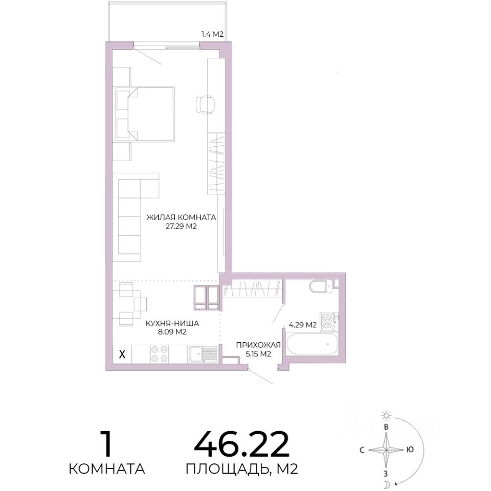 Продаётся 1-комнатная квартира в строящемся доме (дом 17), срок сдачи: IV-кв. 2025, общей площадью 46.22 кв.м., на 3 этаже. Дизайнерская отделка.