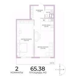 Продаётся 2-комнатная квартира в строящемся доме (дом 17), срок сдачи: IV-кв. 2025, общей площадью 65.38 кв.м., на 13 этаже. Дизайнерская отделка.