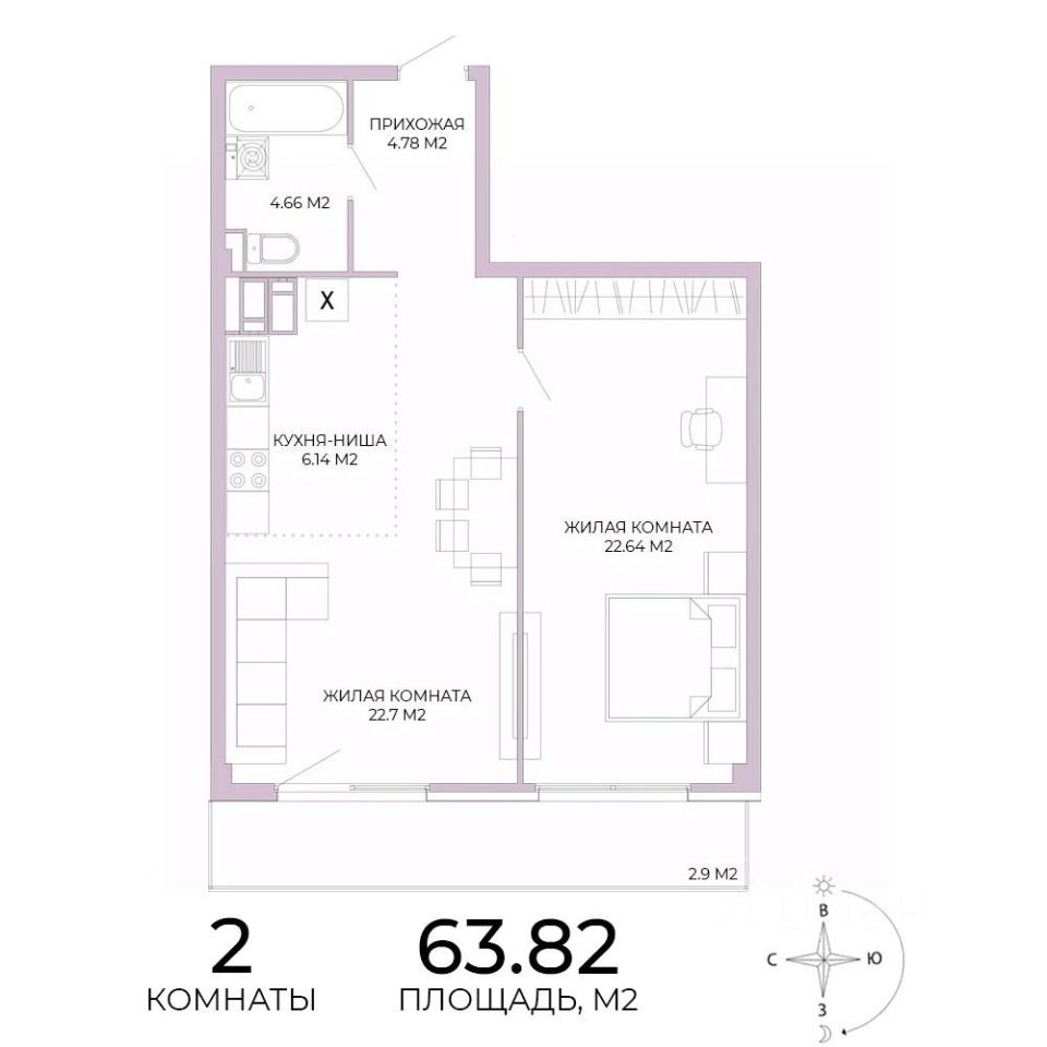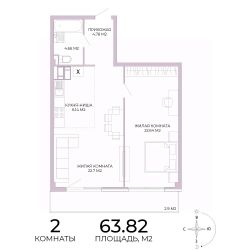 Продаётся 2-комнатная квартира в строящемся доме (дом 17), срок сдачи: IV-кв. 2025, общей площадью 63.82 кв.м., на 13 этаже. Дизайнерская отделка.