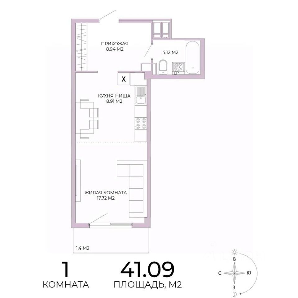 Продаётся 1-комнатная квартира в строящемся доме (дом 17), срок сдачи: IV-кв. 2025, общей площадью 41.09 кв.м., на 14 этаже. Дизайнерская отделка.