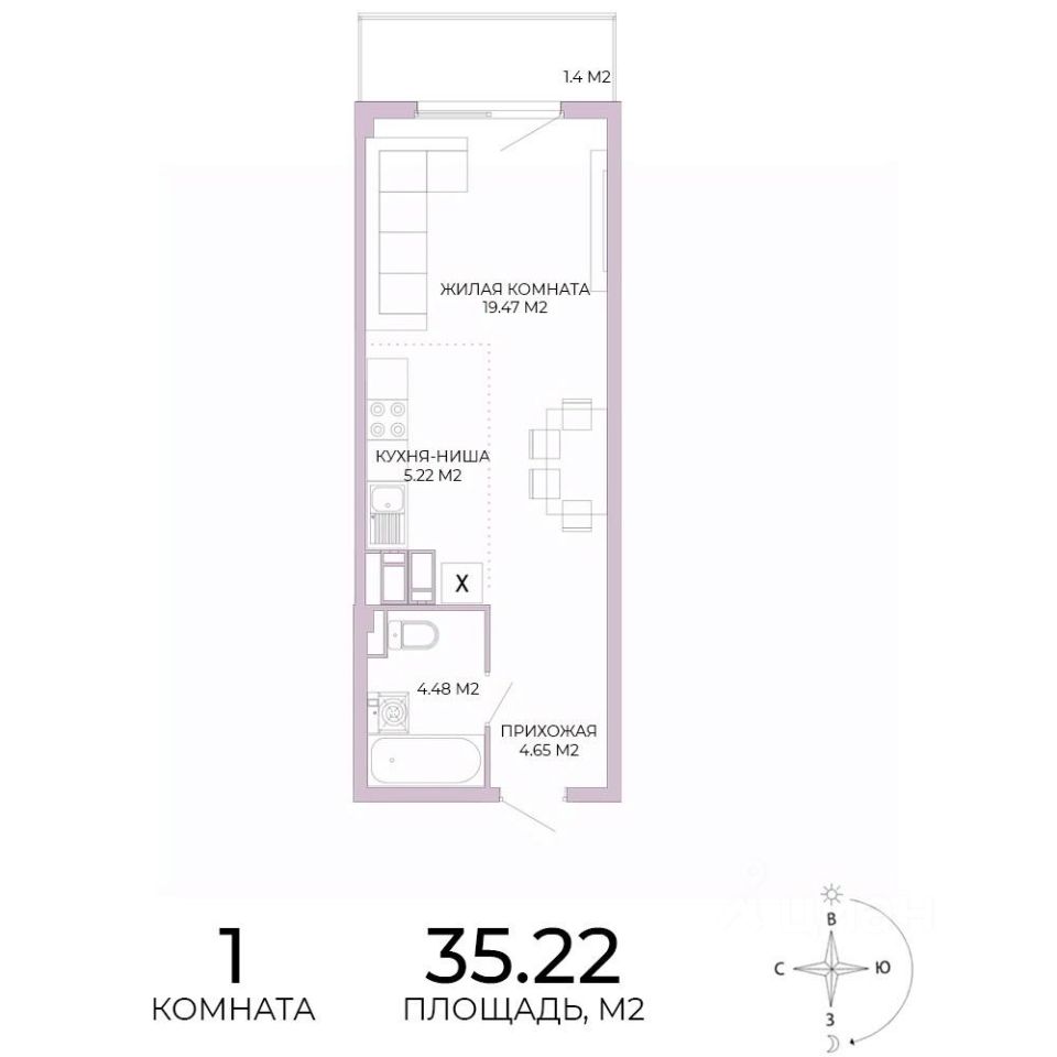Продаётся 1-комнатная квартира в строящемся доме (дом 17), срок сдачи: IV-кв. 2025, общей площадью 35.22 кв.м., на 15 этаже. Дизайнерская отделка.
