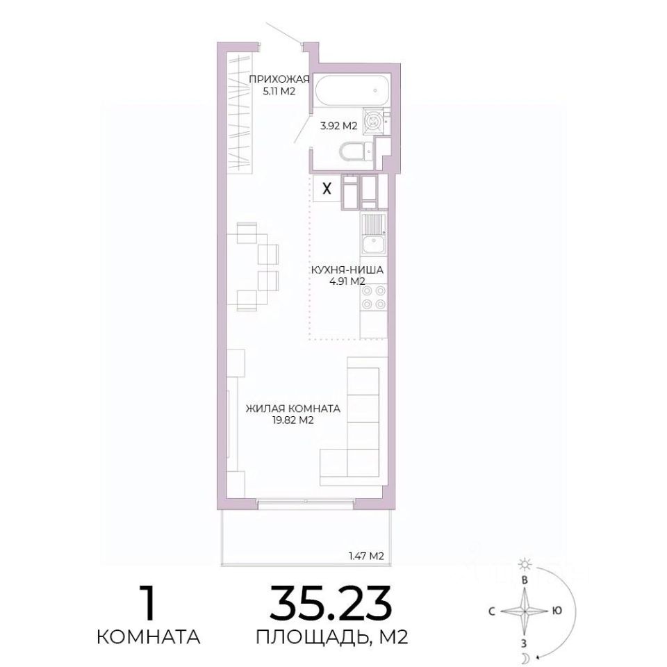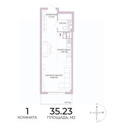 Продаётся 1-комнатная квартира в строящемся доме (дом 17), срок сдачи: IV-кв. 2025, общей площадью 35.23 кв.м., на 15 этаже. Дизайнерская отделка.