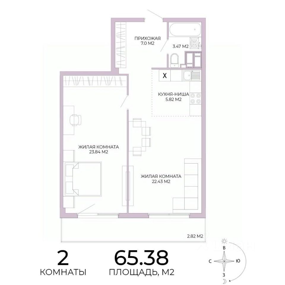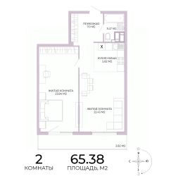 Продаётся 2-комнатная квартира в строящемся доме (дом 17), срок сдачи: IV-кв. 2025, общей площадью 65.38 кв.м., на 16 этаже. Дизайнерская отделка.