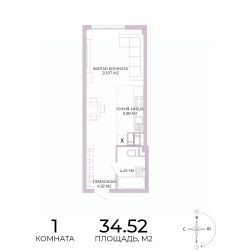 Продаётся 1-комнатная квартира в строящемся доме (дом 17), срок сдачи: IV-кв. 2025, общей площадью 34.52 кв.м., на 16 этаже. Дизайнерская отделка.
