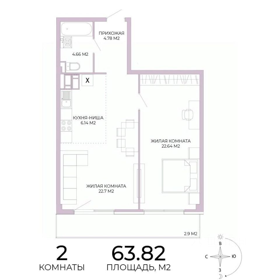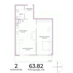 Продаётся 2-комнатная квартира в строящемся доме (дом 17), срок сдачи: IV-кв. 2025, общей площадью 63.82 кв.м., на 17 этаже. Дизайнерская отделка.
