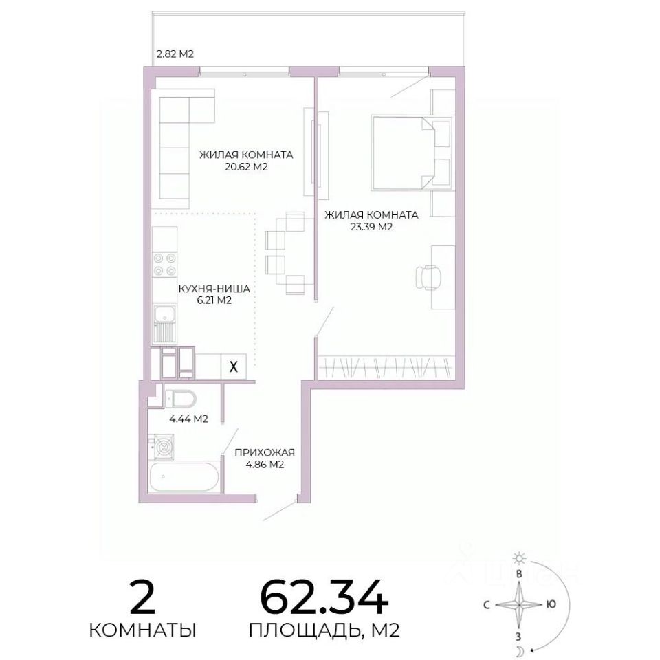 Продаётся 2-комнатная квартира в строящемся доме (дом 17), срок сдачи: IV-кв. 2025, общей площадью 62.34 кв.м., на 4 этаже. Дизайнерская отделка.