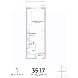 Продаётся 1-комнатная квартира в строящемся доме (дом 17), срок сдачи: IV-кв. 2025, общей площадью 35.17 кв.м., на 4 этаже. Дизайнерская отделка.