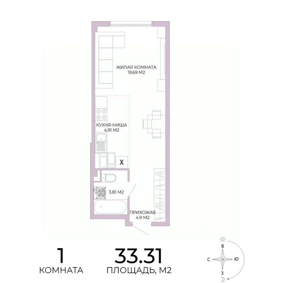 Продаётся 1-комнатная квартира в строящемся доме (дом 17), срок сдачи: IV-кв. 2025, общей площадью 33.31 кв.м., на 4 этаже. Дизайнерская отделка.