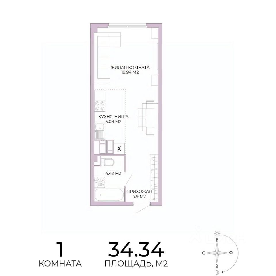 Продаётся 1-комнатная квартира в строящемся доме (дом 17), срок сдачи: IV-кв. 2025, общей площадью 34.34 кв.м., на 5 этаже. Дизайнерская отделка.